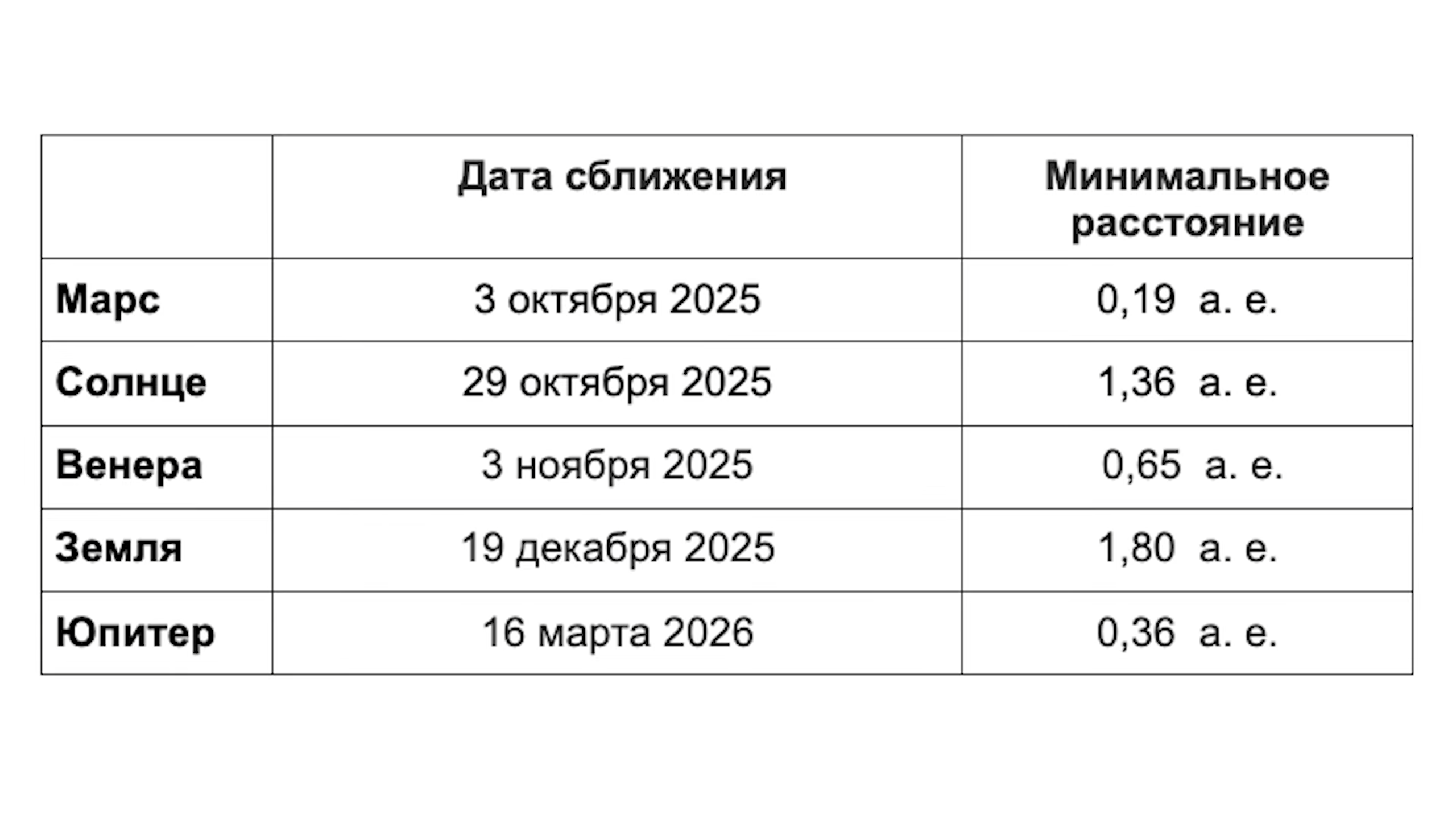 Также, публикуем подробное расписание тура 3I/ATLAS по Солнечной системе (к сожалению, завоевание Земли туда не входит, да):